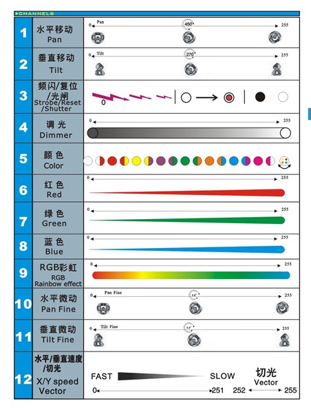 Channel: 12 CH, DMX512 channel control