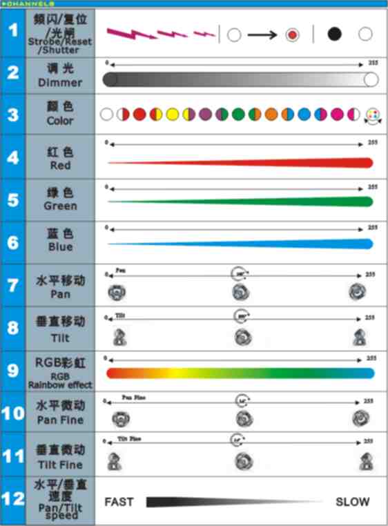 Control Signal:DMX 512 Control Channels:13CH(16bit) 8CH(8bit)