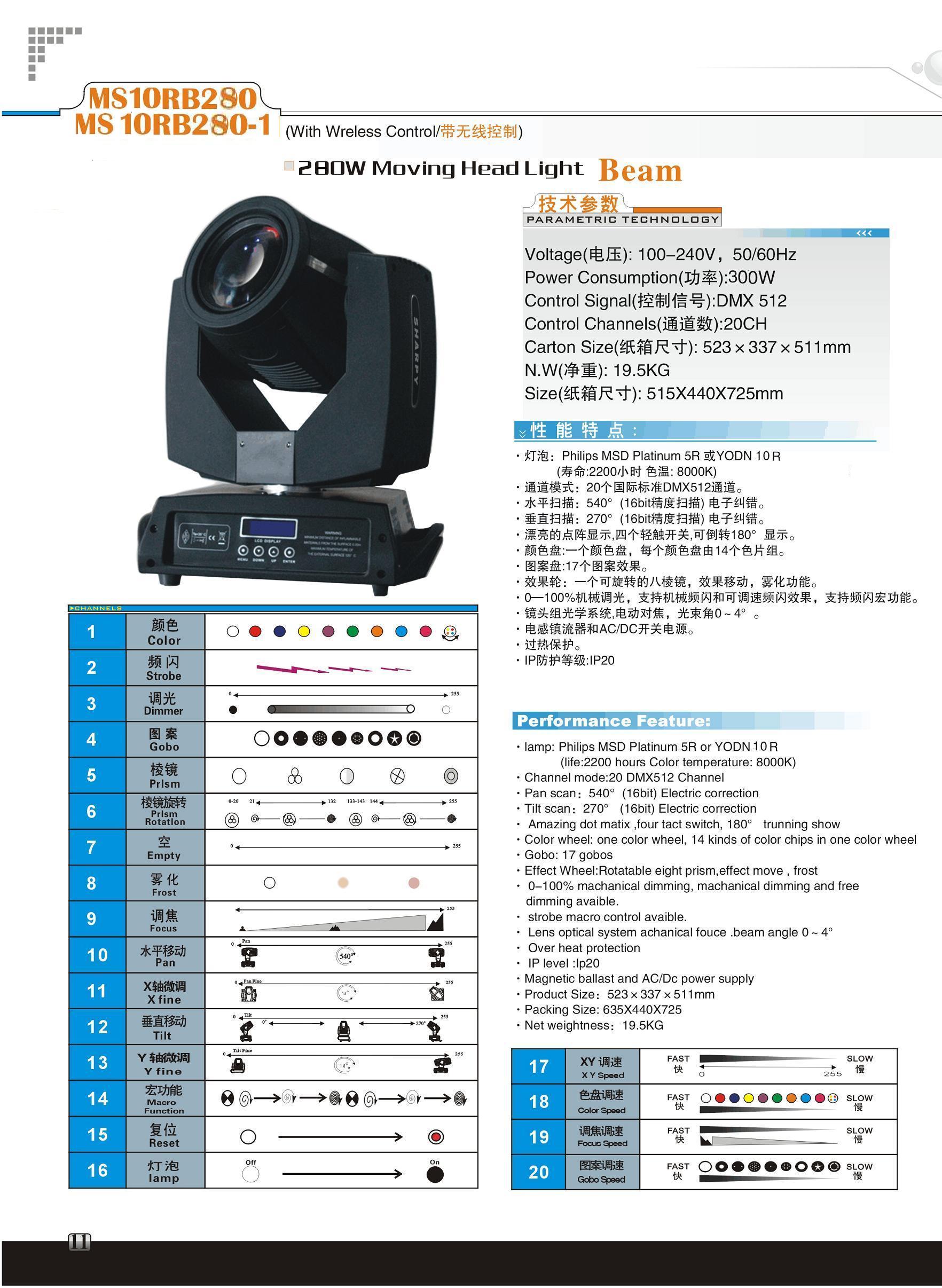 - Product >> Moving-Head light >> Beam Light >> MS-10RB280